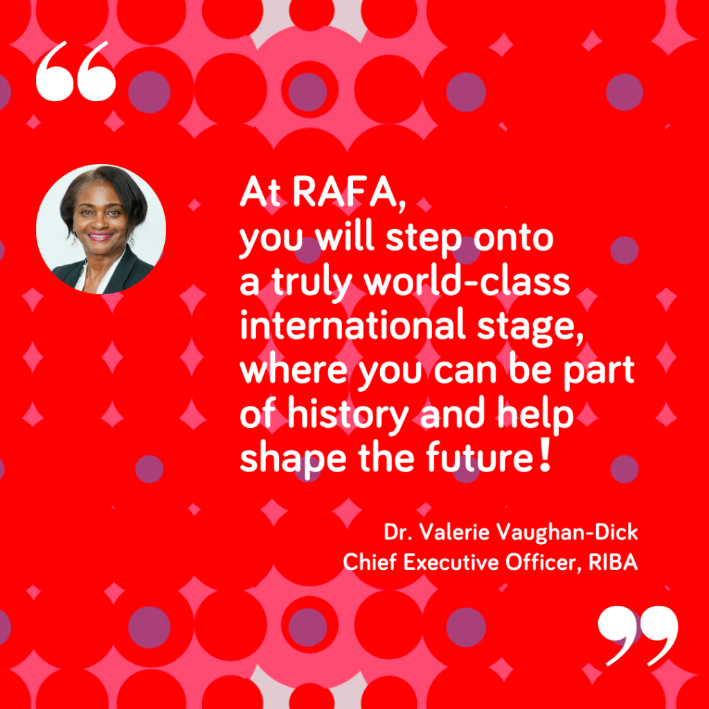 RAFA also offers unparalleled opportunities to connect with architects and built environmental professionals at?formal and informal networking sessions and a programme of building tours.